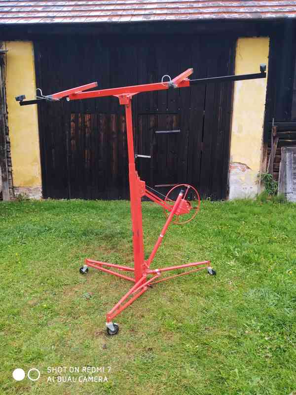 Zvedák se dá nastavit na výšku 1250-3350 mm, nosnost 68 kg. - možné i pro montáž OSB desky.