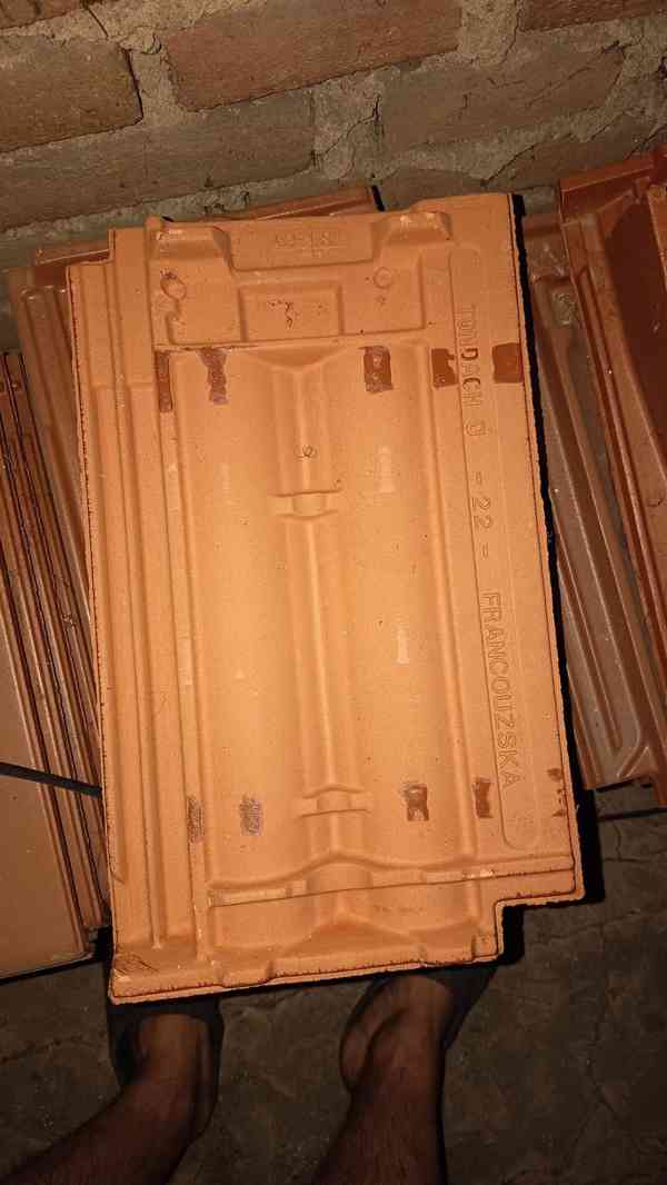 Prodám pálené použité pálené tašky Tondach Franc 14 v odstínu 22 z důvodu rekonstrukce střechy s novou krytinou. cca 2500 kusů běžných tašek, pár desítek hřebenáčů a tak stovka krajních. cca 160m2.