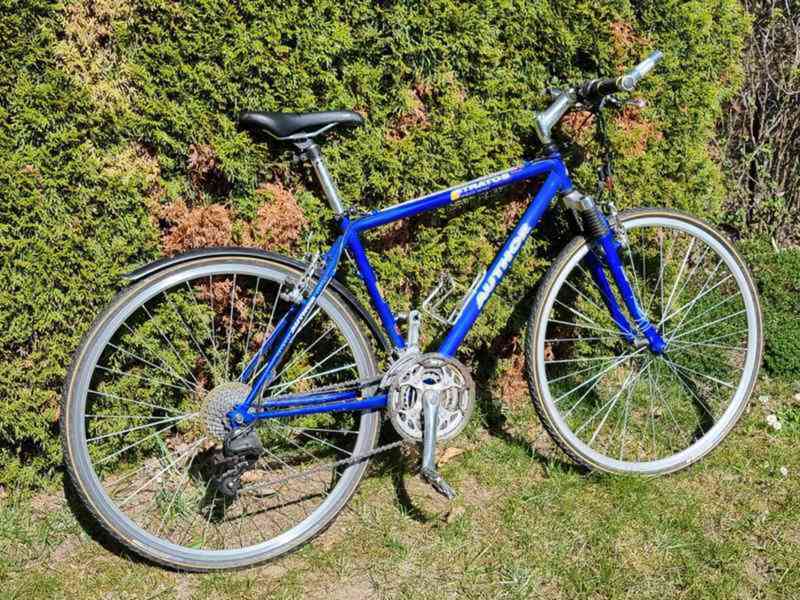 Prodám trekingové kolo Author Stratos. Rám 18“, kola 28“, odpružená přední vidlice, rohy na řídítkách, nové sedlo, jen zadní blatník. Je stále plně funkční. Přehazování přes gripshift, převody 3x8. Jen osobní odběr.