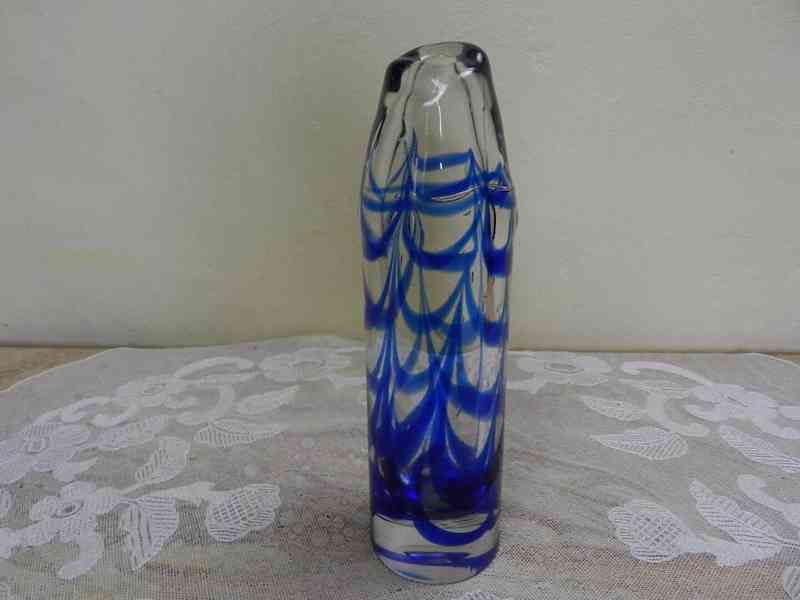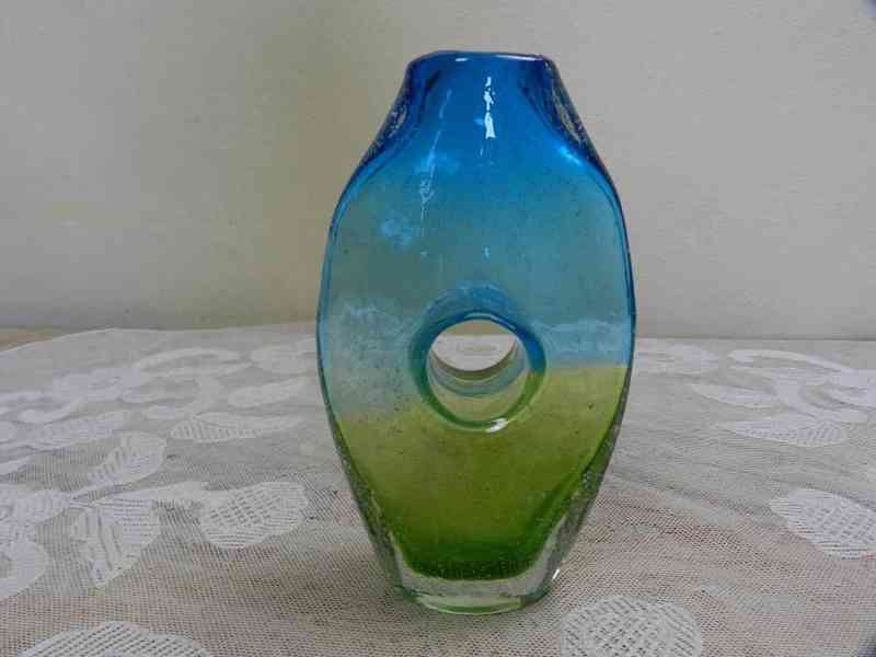 Zajímavá autorská modro zelená Váza, hutní sklo -Čechy, 2 pol. 20 stol.