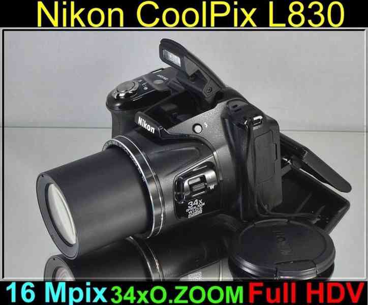 Nikon Coolpix L830 je kompaktní ultrazoom s rozlišením 16 MPix a optickým zoomem 34x. Je vybaven hybridním stabilizátorem obrazu a výklopným displejem. Natáčí FullHD video.