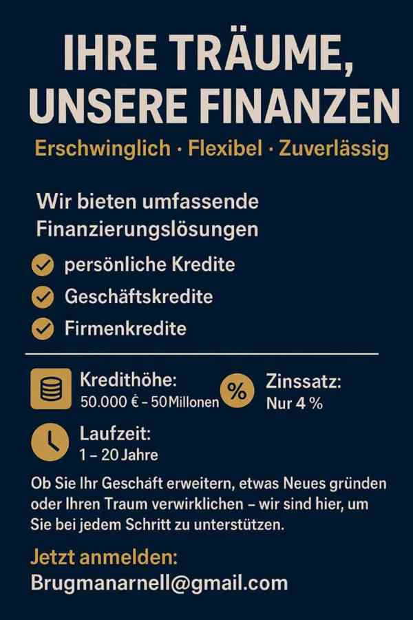 Potřebujete-li půjčku nebo finanční pomoc, abyste se dostali ze své současné finanční situace, kontaktujte mě prosím e-mailem: