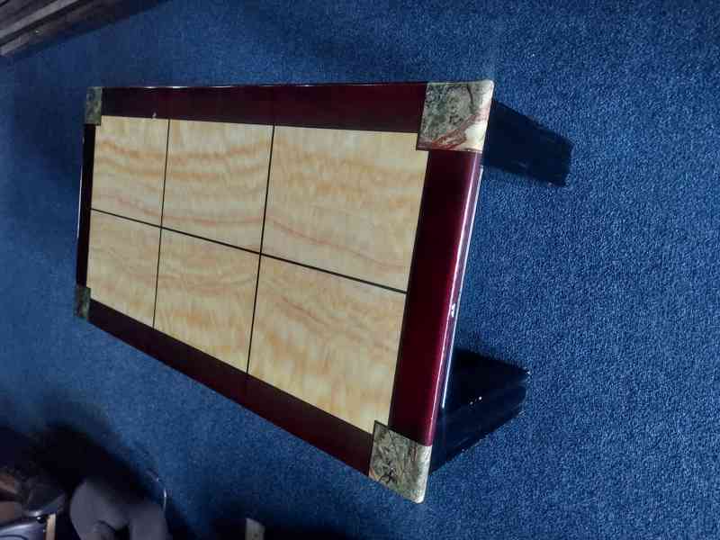Stolek je stabilní, s pevnou konstrukcí, keramická horní deska má menší vadu, ale na funkčnost nemá vliv. Vhodný na chalupu, do obýváku nebo jako odkládací stolek.