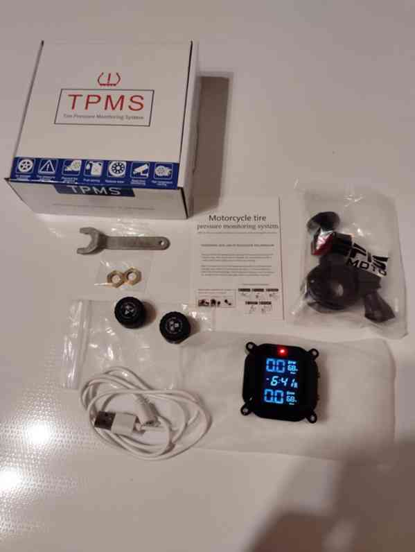 Prodám téměř nové jen rozbalené v originál krabici a pouze odzkoušené,včetně držáku balení TPMS snímače tlaku v pneumatikách motocyklu ale i elektrokola či kola pro okamžité informace o tlaku v pneumatikách, jak v klidu,tak za jízdy. Na displeji zobrazen tlak přední a zadní pneumatiky,aktuální teplota i čas,včetně stavu nabití baterie se zvukovým upozorněním na úbytek tlaku a případný defekt i aktuální stav. Sada vodotěsná (IP65) se skládá z 2x chytré krytky ventilků s jistícími maticemi+ klíč proto krádeži, které jsou bezdrátově propojené s centrální jednotkou s velkým přehledným displejem umístěnou na držáku na řídítkách s úchytem od 15 mm až 25 mm+ nabíjecí USB kabel+ originál i navíc přidám detailní návod v cz Na displeji se během jízdy zobrazuje aktuální hodnota tlaku v pneumatikách a čas.Provozní teplota:–20 °C až + 75 °C.Baterie v chytrých krytek/senzoru:CR1632.Rozpětí měřitelného tlaku: 0 – 6,6 bar s přesností měření tlaku ± 0,1 bar i teploty ± 3 °C.Pracuje na frekvenci spojení 433,92 MHz ± 50,00 MHz.Rozměry řídící jednotky s diplay : 50×50×25 mm.