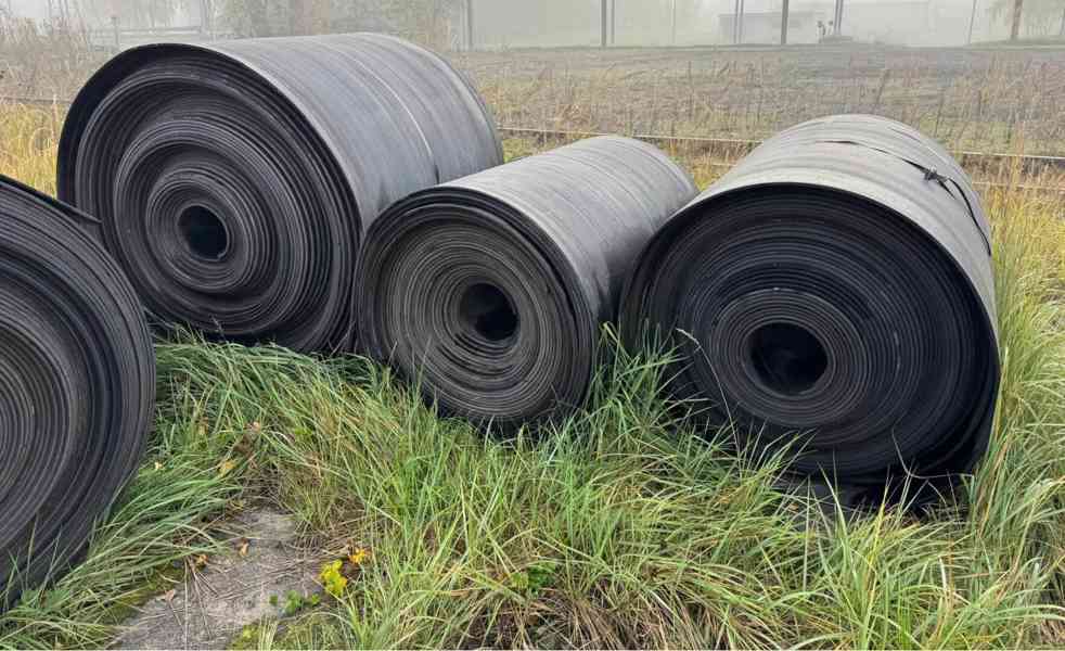Prodám textilní pásovou gumu - pásovinu. Rozměry: šíře: 0,63 - 1,6m a síla 1-1,5 cm. Cena 140,-Kč/m2, bez DPH. Skladem Kladno