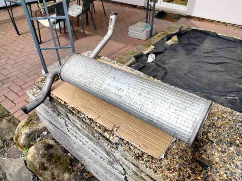 Prodám krátkodobě použitý zadní tlumič výfuku zn.Polmo 04.233 (OE 1730.H0)-C1+Peugeot.(OE 17430-OQ010)-Toyota. Zadní tlumič v pořádku s povrchovou rzí v oblasti svárů.
