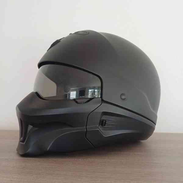 Materiál polykarbonát, odnímatelná bradová část, horní a bradová ventilace, vnitřní sklápěcí tmavě kouřová sluneční clona, v přilbě lze nosit veškeré dioptrické brýle, hypoalergenní plně vyjímatelný a pratelný interiér, zapínání přilby mikropřezkou, homologace ECE 22.05., hmotnost 1300 g (+/- 50 g). Běžná cena na internetu 4800 Kč. Je libo integrální a otevřenou přilbu v jednom jediném modelu.