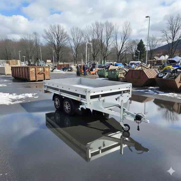 NOVÝ PROFI - přívěsný vozík bržděný za automobil 100 kg PREMIUM 320TB - VYSOKOPEVNOSTNÍ SVAŘOVANÝ RÁM - 2x bržděná náprava 1050 - vyšší konstrukční nosnost. Odnímatelné bočnice umožňují rychlou přestavbu na plato.