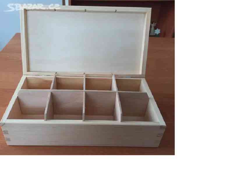 Dřevěná krabička H8 s 8 přihrádkami na čaj. Rozměry produktu: