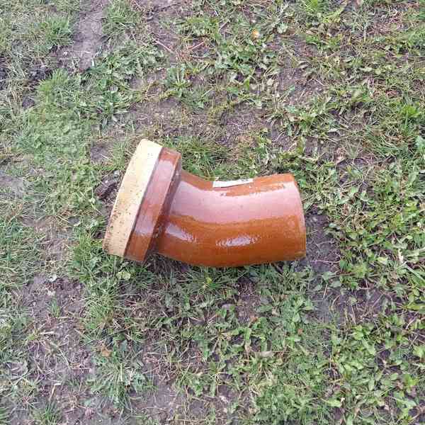 Prodám keramické kanalizační koleno, nepoužité. Rozměry na fotografii. Sklon 15-30 stupňů ?