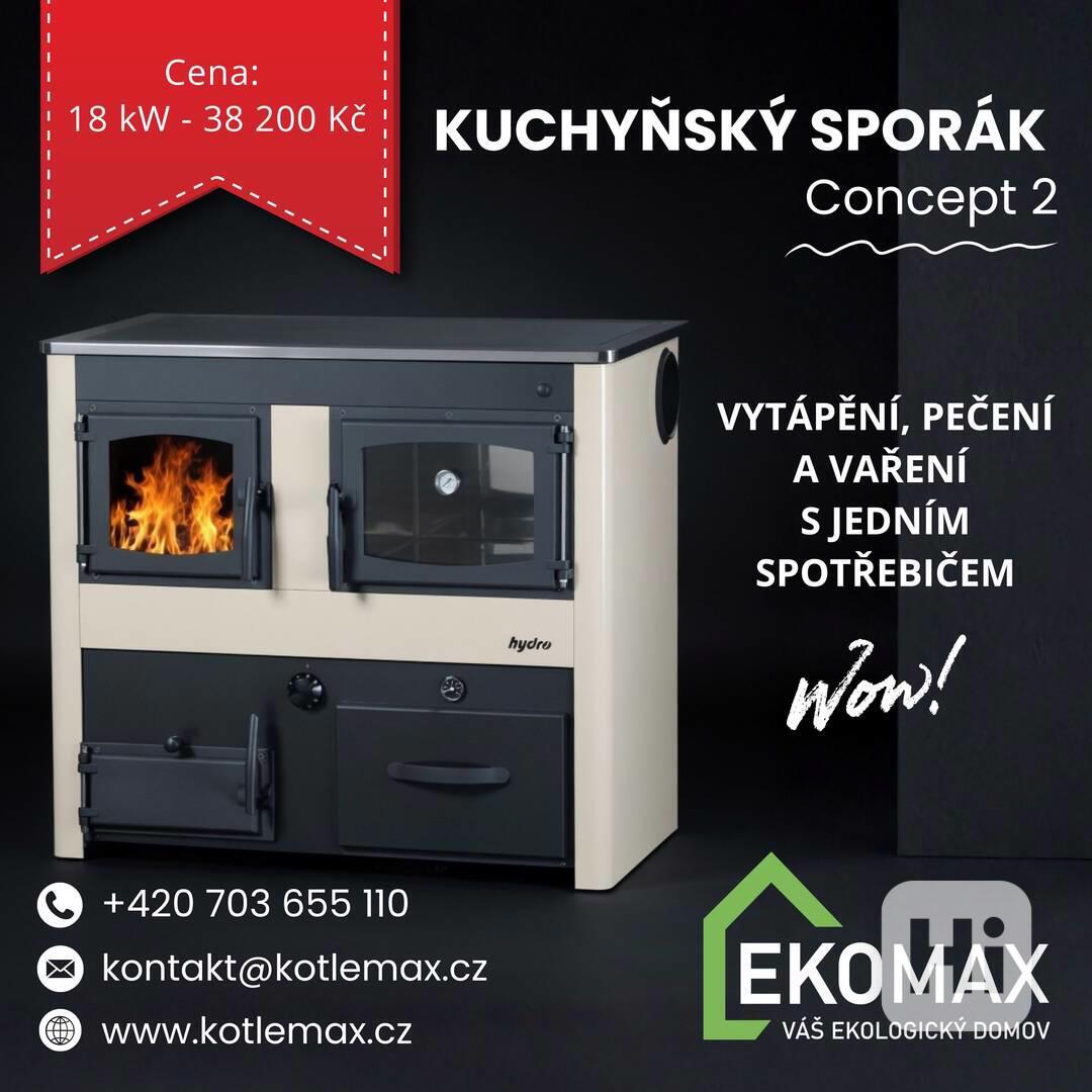 Kuchyňský sporák Concept 2 kombinuje funkci krbu s vodními tryskami a možnost přípravy jídel, čímž vytváří praktické a elegantní řešení pro každou domácnost.