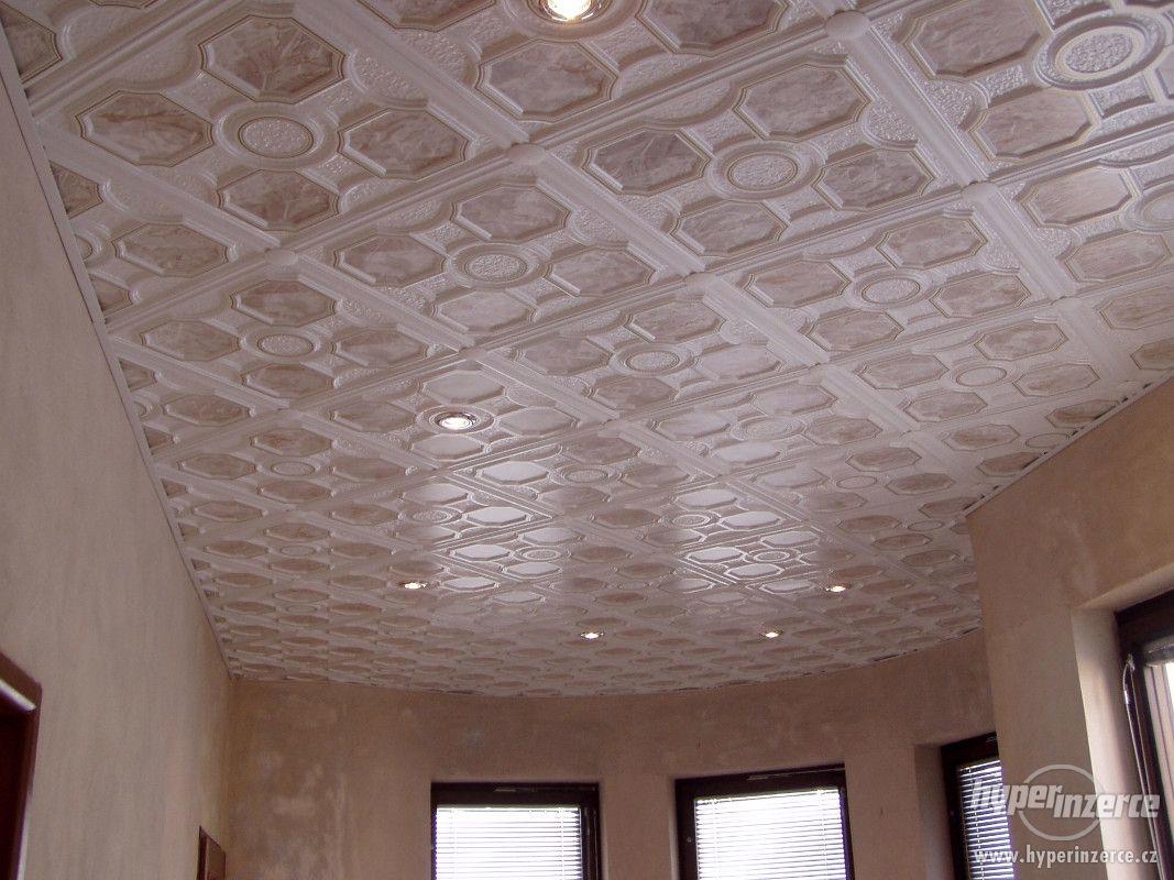 Několik druhů stropních podhledů, jednoduchá montáž. Vyrobeno z vysoce kvalitního materiálu PVC o tloušťce 1,1 mm bílé barvy. Podobný materiál se používá i na výrobu plastových oken. Váha jednoho podhledu činí 450 g. Rozměr 50 x 50 x 2 cm. Spotřeba 4ks/m2 Cena od 90,-Kč/ks Tento vzor se zejména hodí pro předsíně , chodby , malé pokoje i větší místnosti, ve starých domech, chatách, chalupách, ale i v nových rodinných domech či panelových bytech. Montáž se provádí vždy přibíjením speciálním kladívkem na podkladový rošt z dřevěných latí. Údržba – může se omývat vodou se saponátem. Info. tel. 777200471