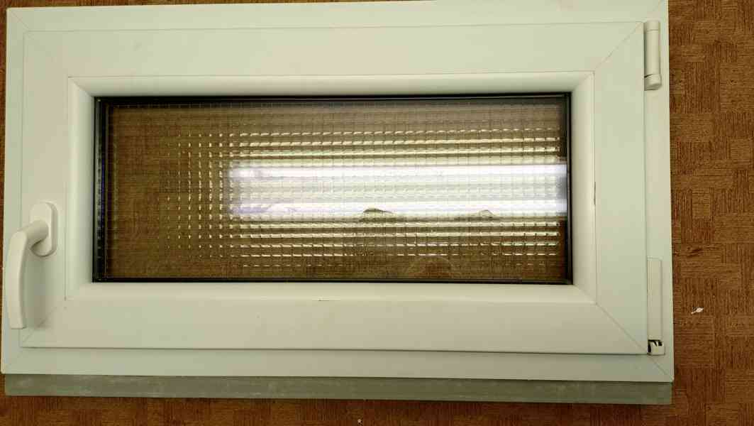 Prodám plastové otvírací i výklopné okno s izolačním drátosklem s vnějším rozměrem rámu 82*46*7 cm.