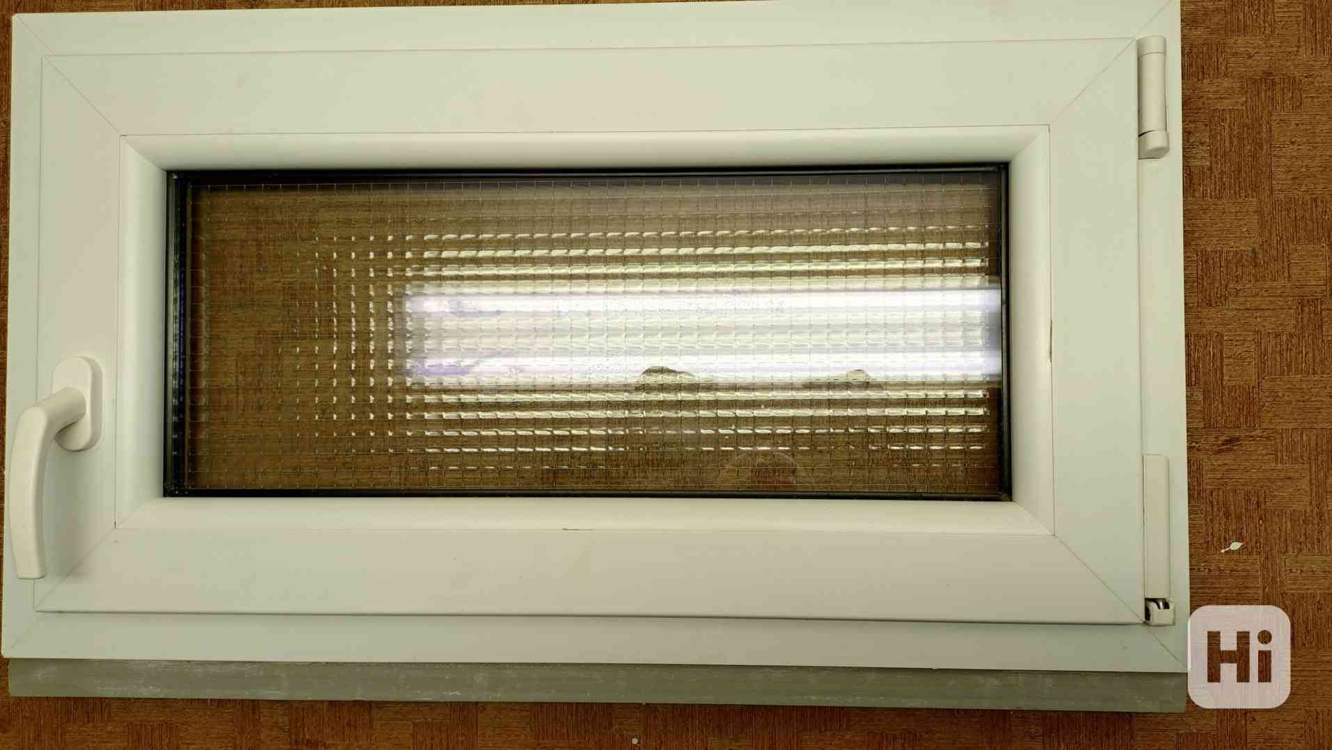 Prodám plastové otvírací i výklopné okno s izolačním drátosklem s vnějším rozměrem rámu 82*46*7 cm.