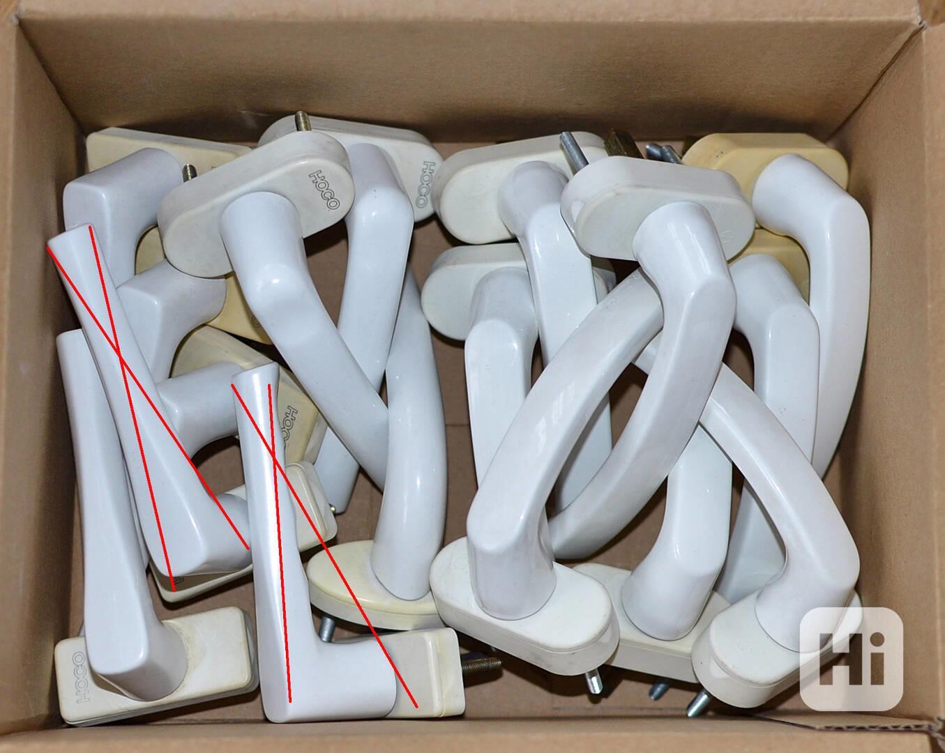 Hliníkové kliky bílé barvy kompatibilní s většinu běžných plastových oken a dveří. K dispozici celkem 13 kusů (2 kusy dle fotek 2+3+4, 4 kusy dle fotek 5+6, 6 kusů dle fotek 7+8, 1 kus dle fotek 9+10) včetně šroubů, univerzální rozměry: čtyřhran 7x7 mm, délka trnu minimálně 35 mm, rozteč otvorů šroubů 43 mm, různé tvary klik viz foto. Vše kvalitní značkové např. HOCO atd. - jde o starší typy, které již běžně neseženete. Jsou ideální pro opravu stávajících oken a dveří bez narušení jednotného vzhledu klik potřebujete-li některý z tvarů klik co mám. Cena 49 Kč/ks (případná dohoda podle počtu a stavu odebraných kusů možná).