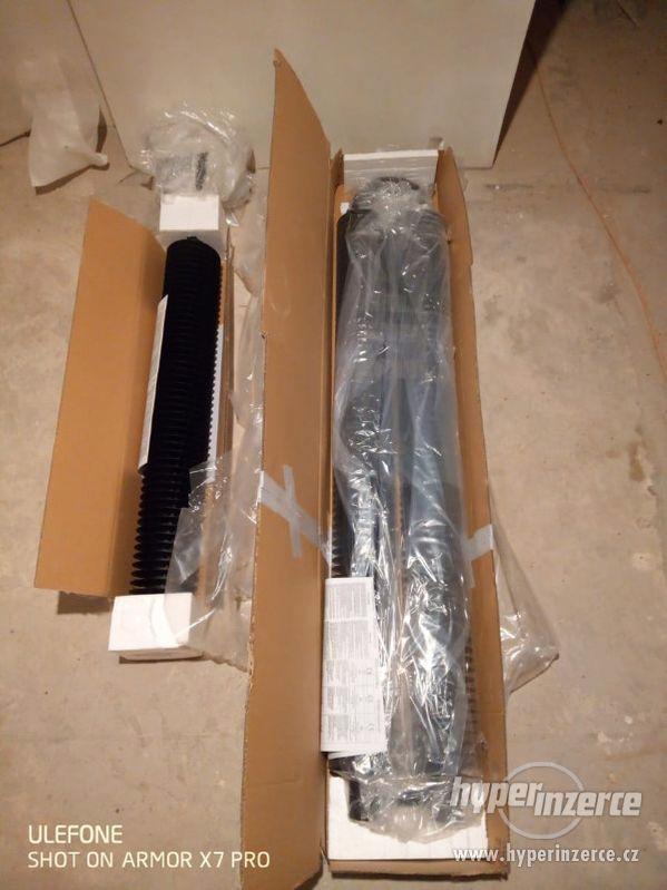 2) radiátor ISAN Spiral RAO2 - W : délka 150 cm, průměr trubky 57 mm, s žebrováním 137 mm, šířka celého radiátoru 282 mm, radiátor na zeď horizontální poloha, barva černá mat. Cena 9900 ,-