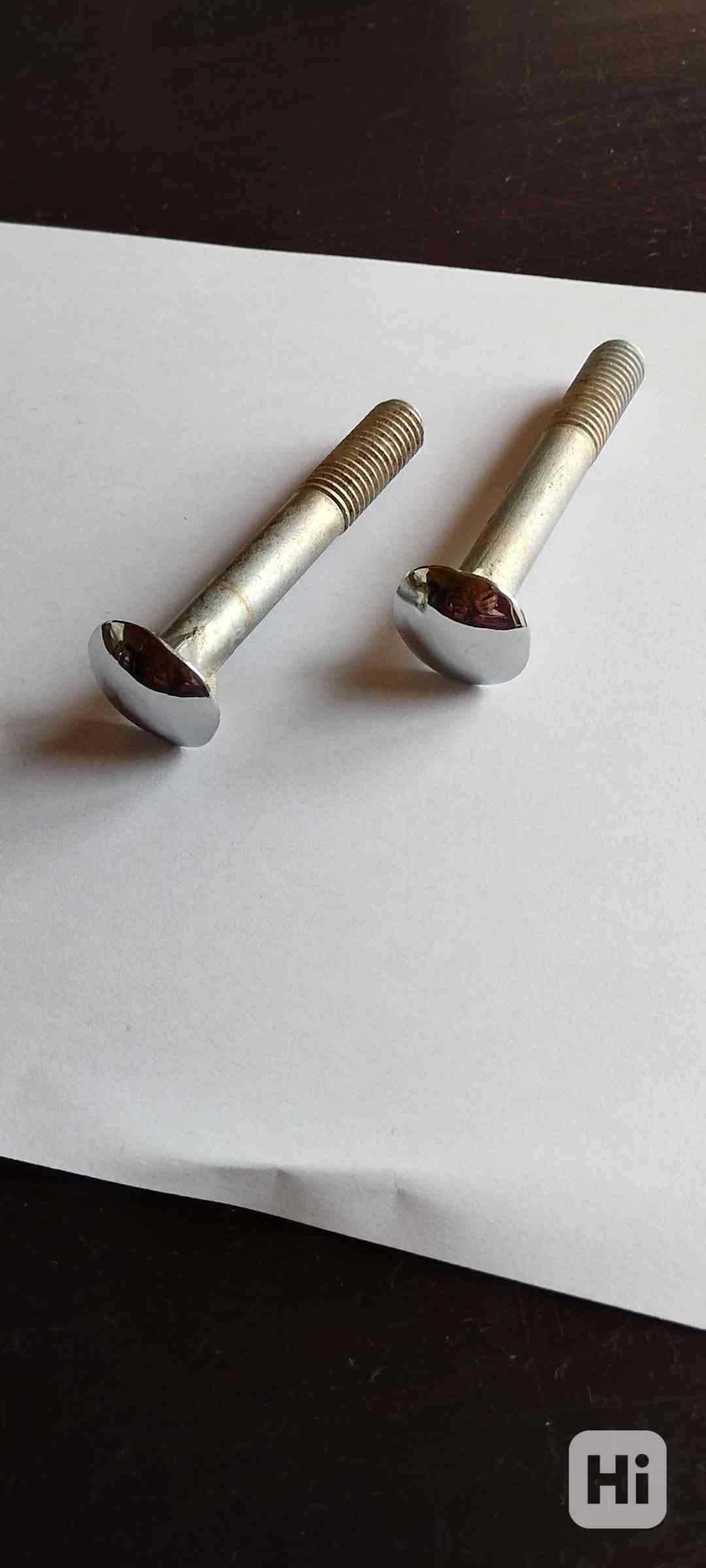 Prodám vratové šrouby - 40 ks, délka 80mm, M-12 - s ozdobnou chromovanou hlavou. Cena 1600,-