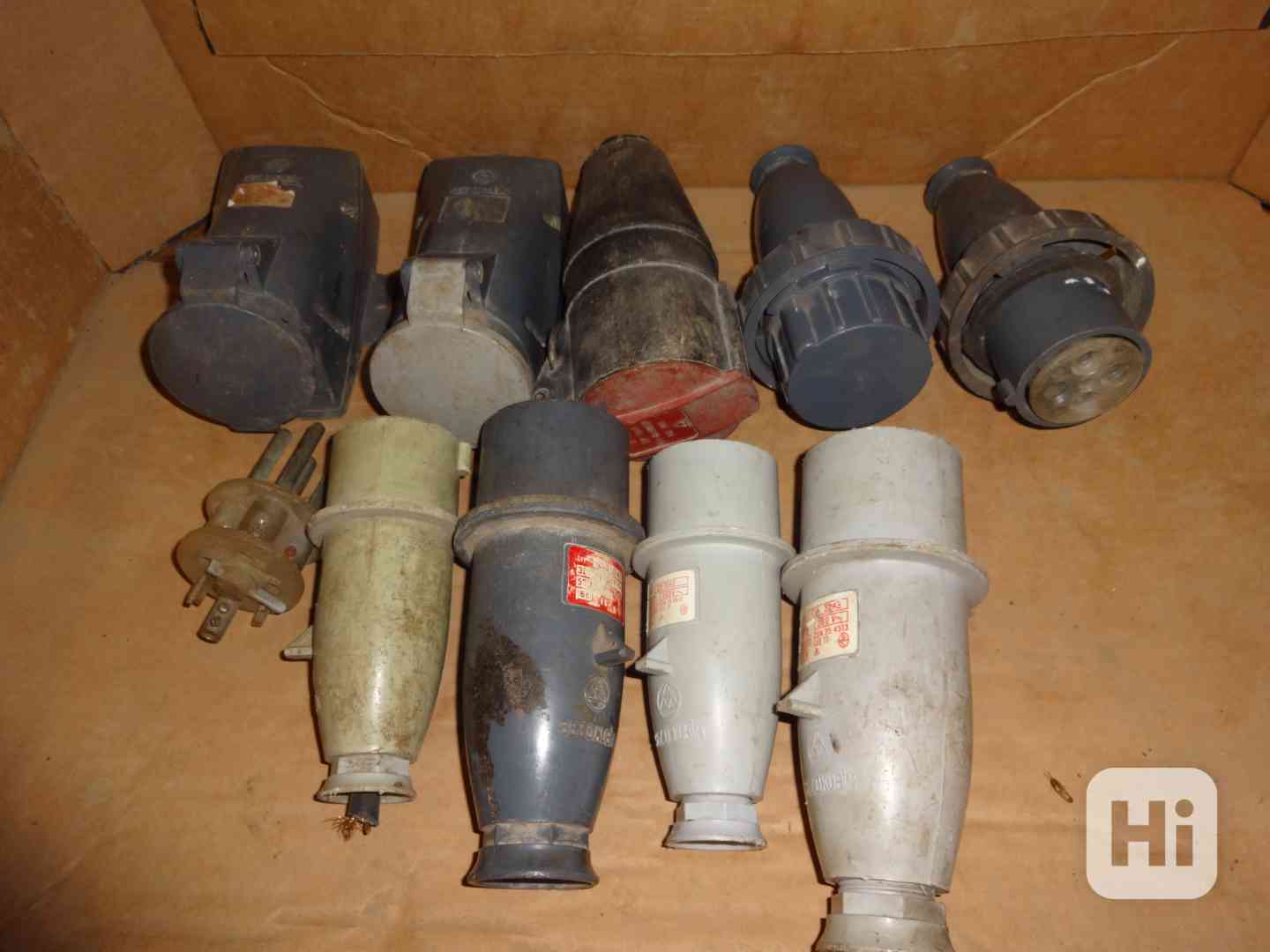 Několik ruznych starších zásuvek 50 Kč kus a 12m káblu vše na 380v dohoda,