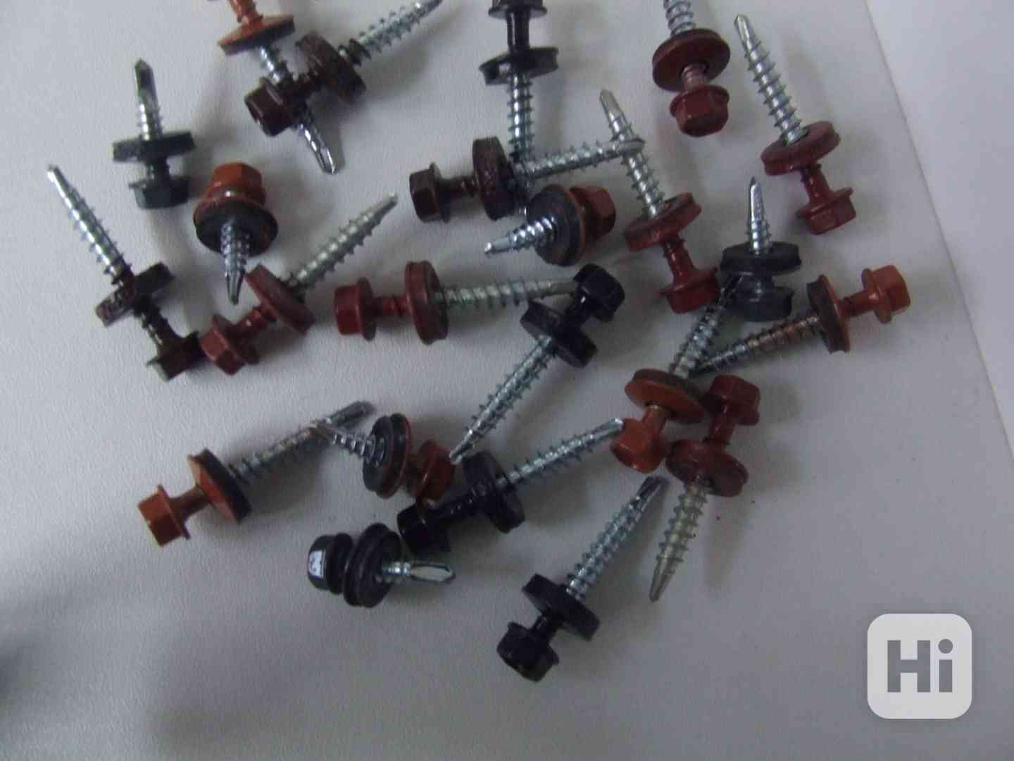 Prodám farmářské šrouby do dřeva s podložkou 4,8x35 a 4,8x20, černé, hnědé, šedé, stříbrné, cihlově červené a pozink, cena 1,50 Kč/ks , baleno po 250 ks