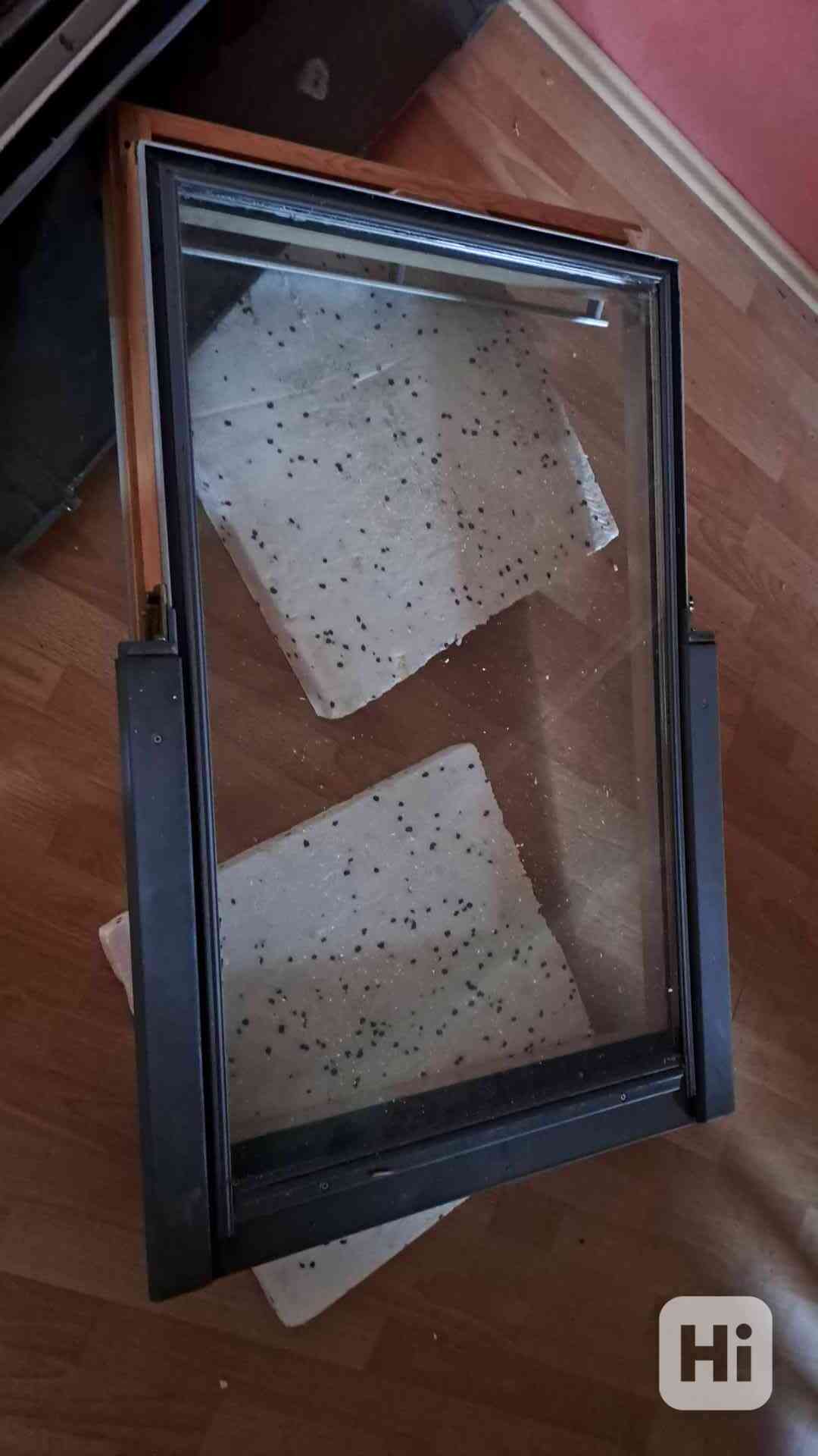 Prodám dvě zánovní střešní okna VELUX, 80 x 120, rozměr rámu 78x118, horní ovládání, venkovní barva antracit, vnitřní lakované dřevo, dvojsklo.